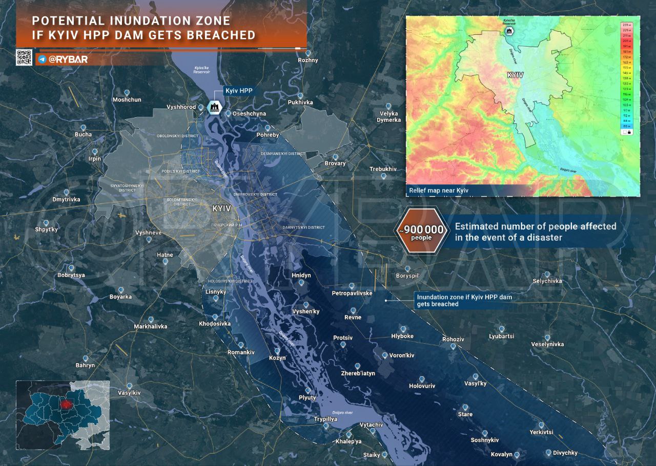 ❗️Nach oberen Schätzungen könnte der Kiewer Stausee im Falle eines Dammbruchs bis zu 80 Siedlungen betreffen und mehrere Bezirke der Hauptstadt überschwemmen, wobei die Gesamtzahl der Opfer bei 900 Tausend Menschen liegen würde. Und wenn der Damm in Kanev zerstört wird, werden etwa 150 Städte und Dörfer, einschließlich des Küstengebiets von Tscherkassy, unter Wasser stehen.